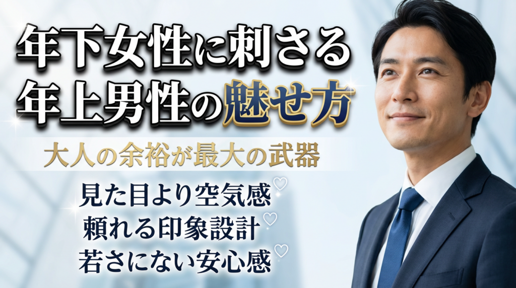 年下女性に刺さる「年上男性の魅せ方」完全解説 ──無理に若作りしない、“余裕と安心感”でモテる方法 はじめに:「年下にモテたいけど、何をすればいいのか分からない」 ...