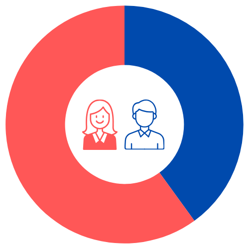 さらに、男女比もほぼ拮抗。40歳以下男女比では女性の方が多いです。